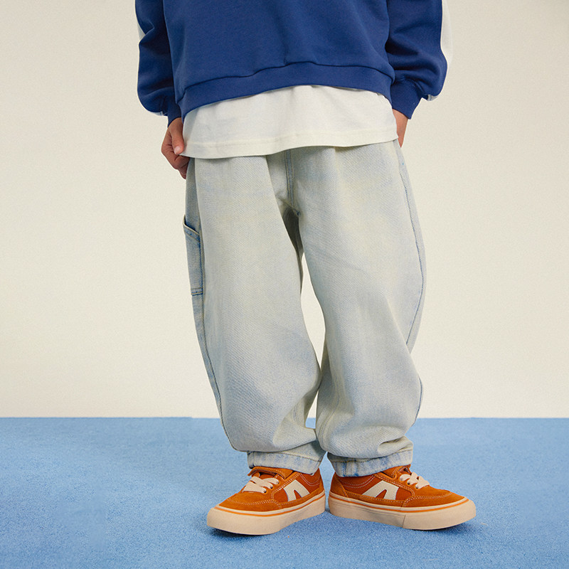 Its 日系儿童做旧水洗牛仔长裤 男女童休闲裤 子 smile