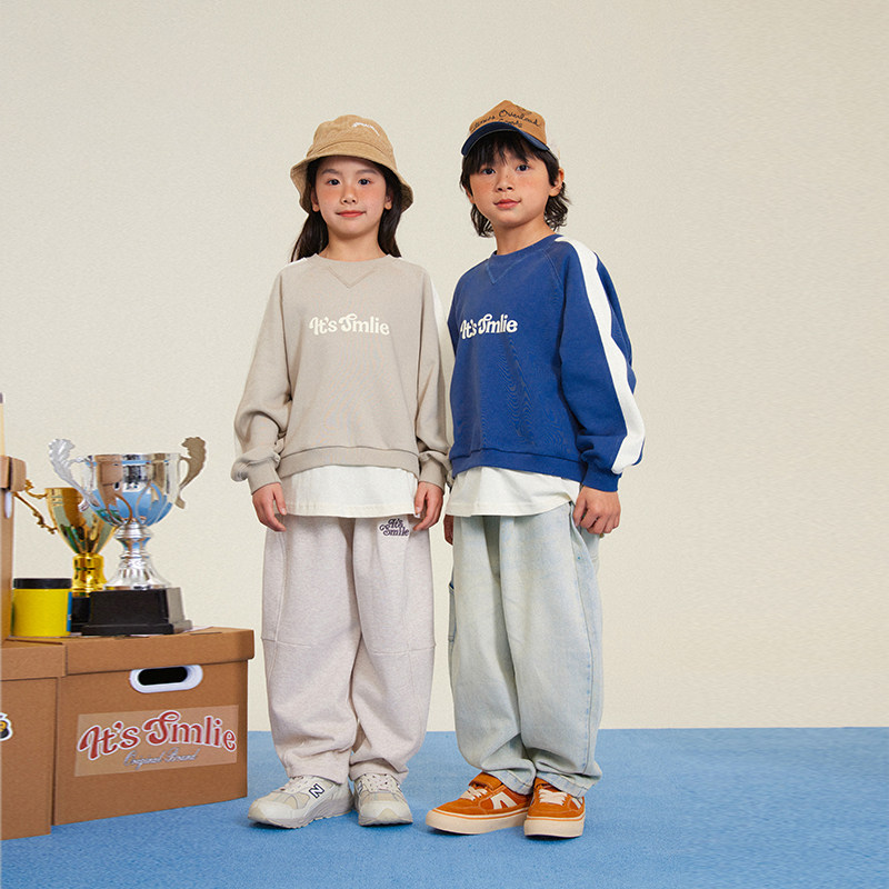 Its 日系儿童做旧水洗牛仔长裤 男女童休闲裤 子 smile由