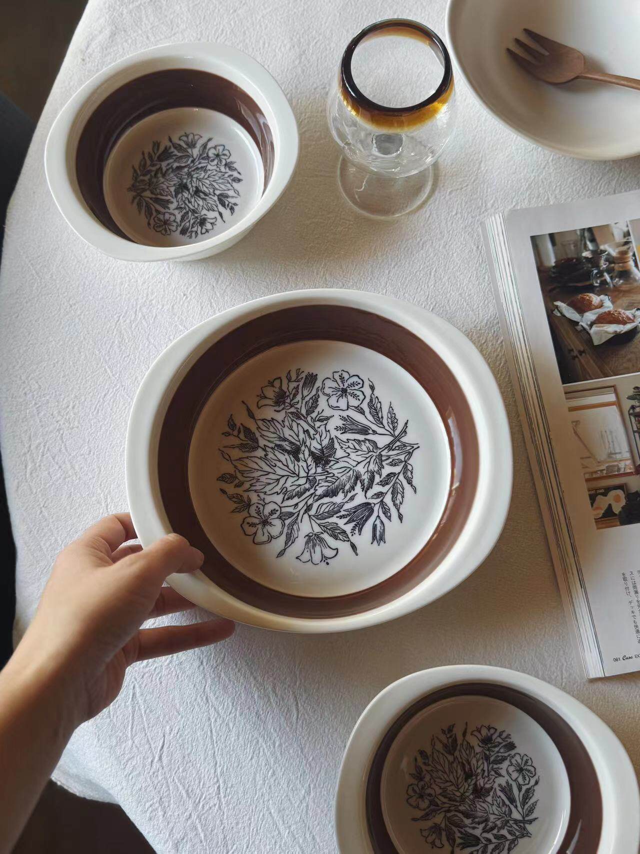 为您提供商品中古复刻陶瓷双耳小碗盘 收集时光 Camus say棕木槿双耳碗盘 包邮的详细介绍,