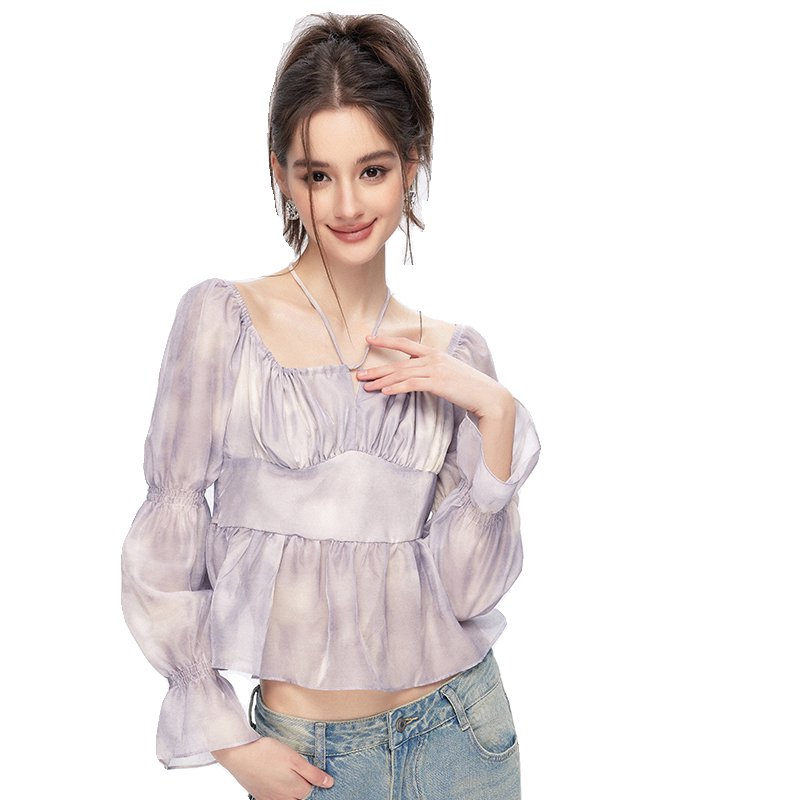 时尚 CHILL ZOEY复古喇叭袖 上衣2026初秋新款 上衣 高级紫色别致长袖由