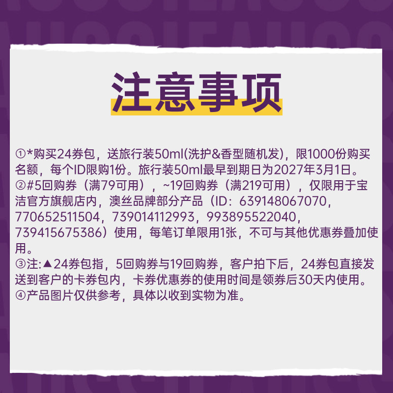 Aussie澳丝回购券包送旅行装 50ml 洗护&系列随机发 U先由