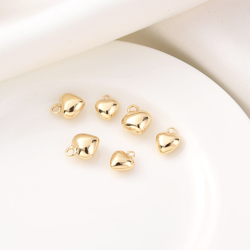 14K包金保色光面空心桃心吊坠手工diy手链项链爱心小挂件饰品吊饰由