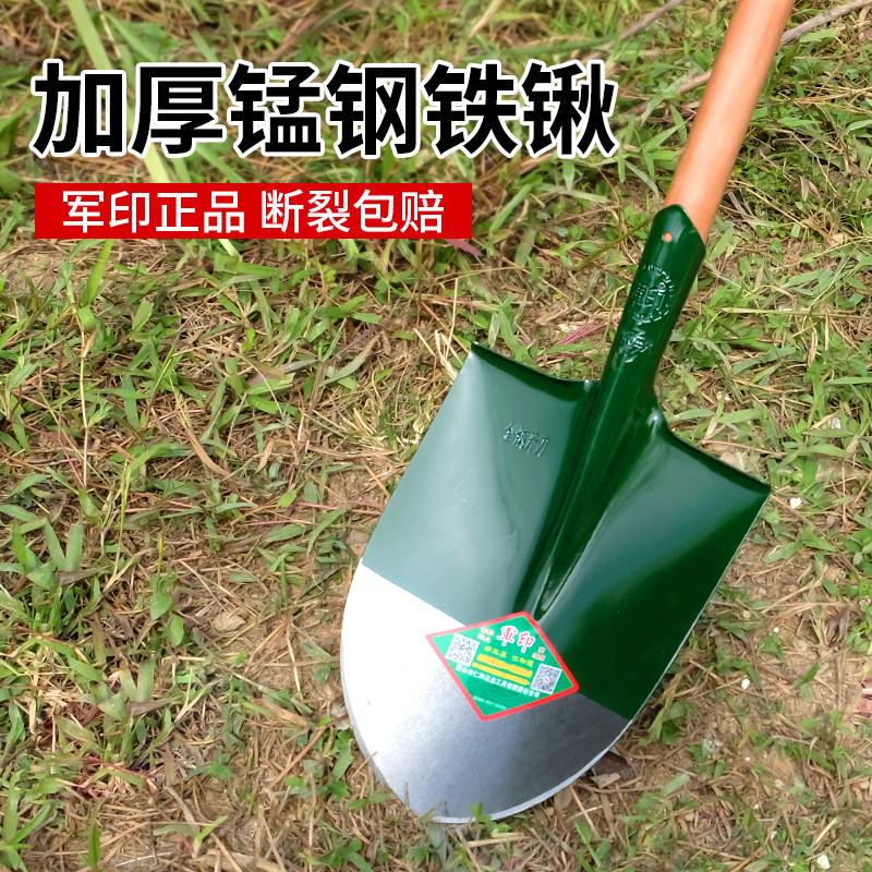 为您提供商品军印铁锹加厚锰钢淬火平头铲子方头铁锹农用挖土种菜工具铁铲铁锨的详细介绍,