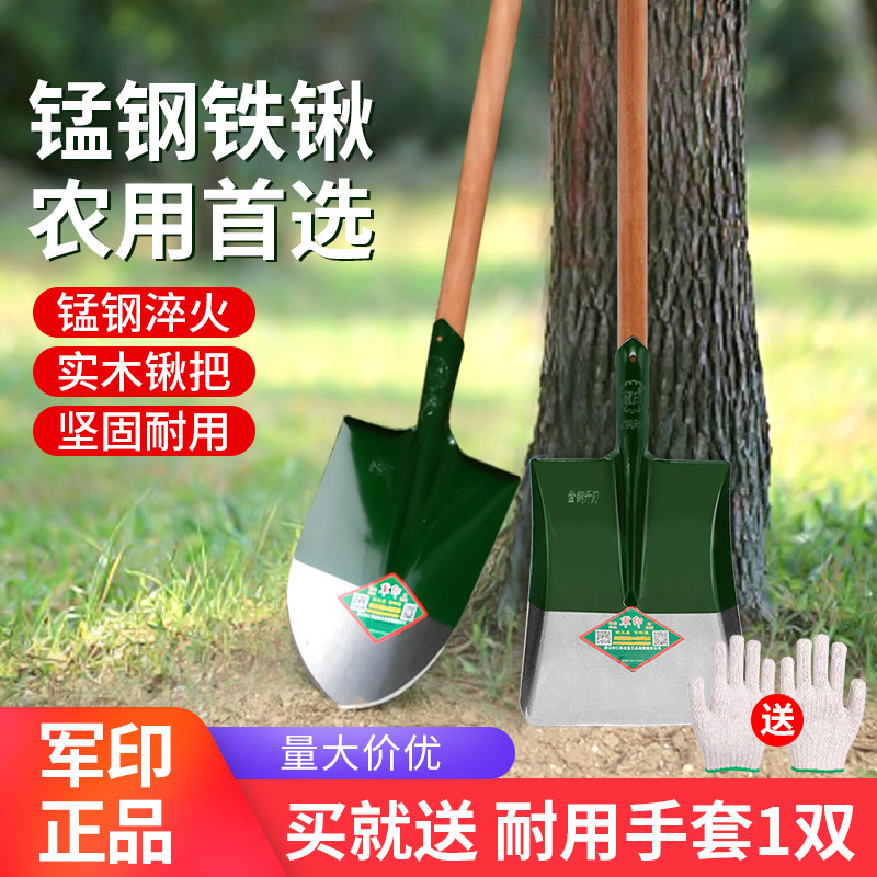 军印铁锹加厚锰钢淬火平头铲子方头铁锹农用挖土种菜工具铁铲铁锨
