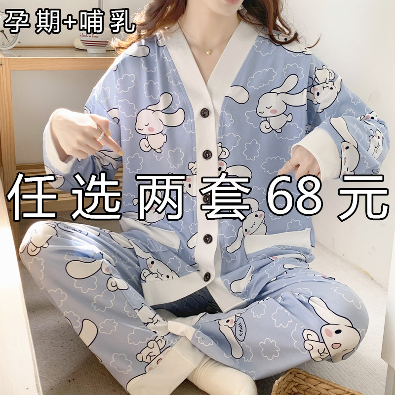 薄款 产妇喂奶家居服 250斤月子服春秋纯棉产后哺乳孕妇睡衣夏季由