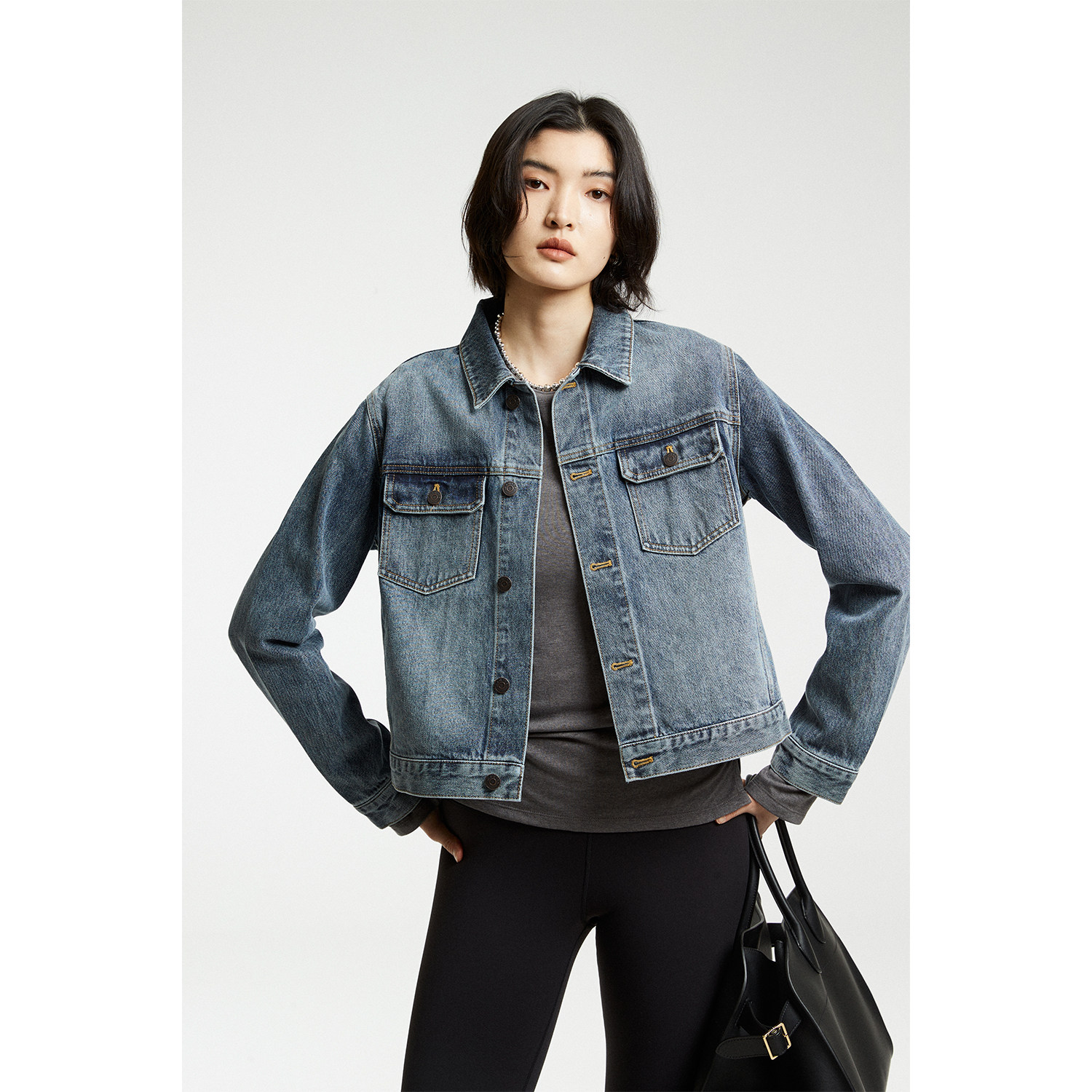 复古做旧时髦灰蓝箱式 MRS Studios 土耳其Bossa 牛仔衣外套 小短款由
