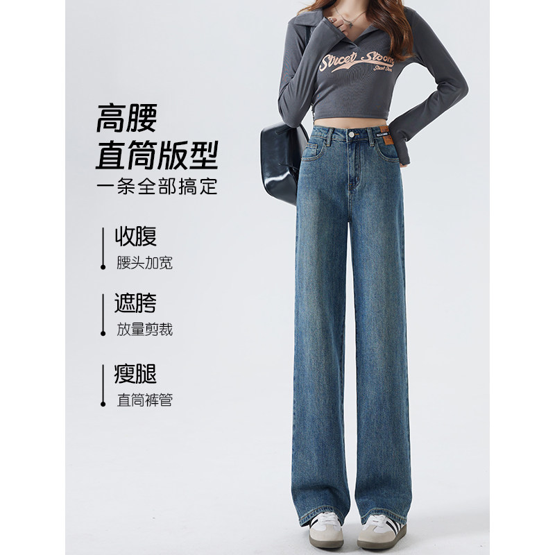 女款 牛仔裤 直筒裤 子 美式 高腰宽松阔腿女士裤 2026春秋新款 高街窄版