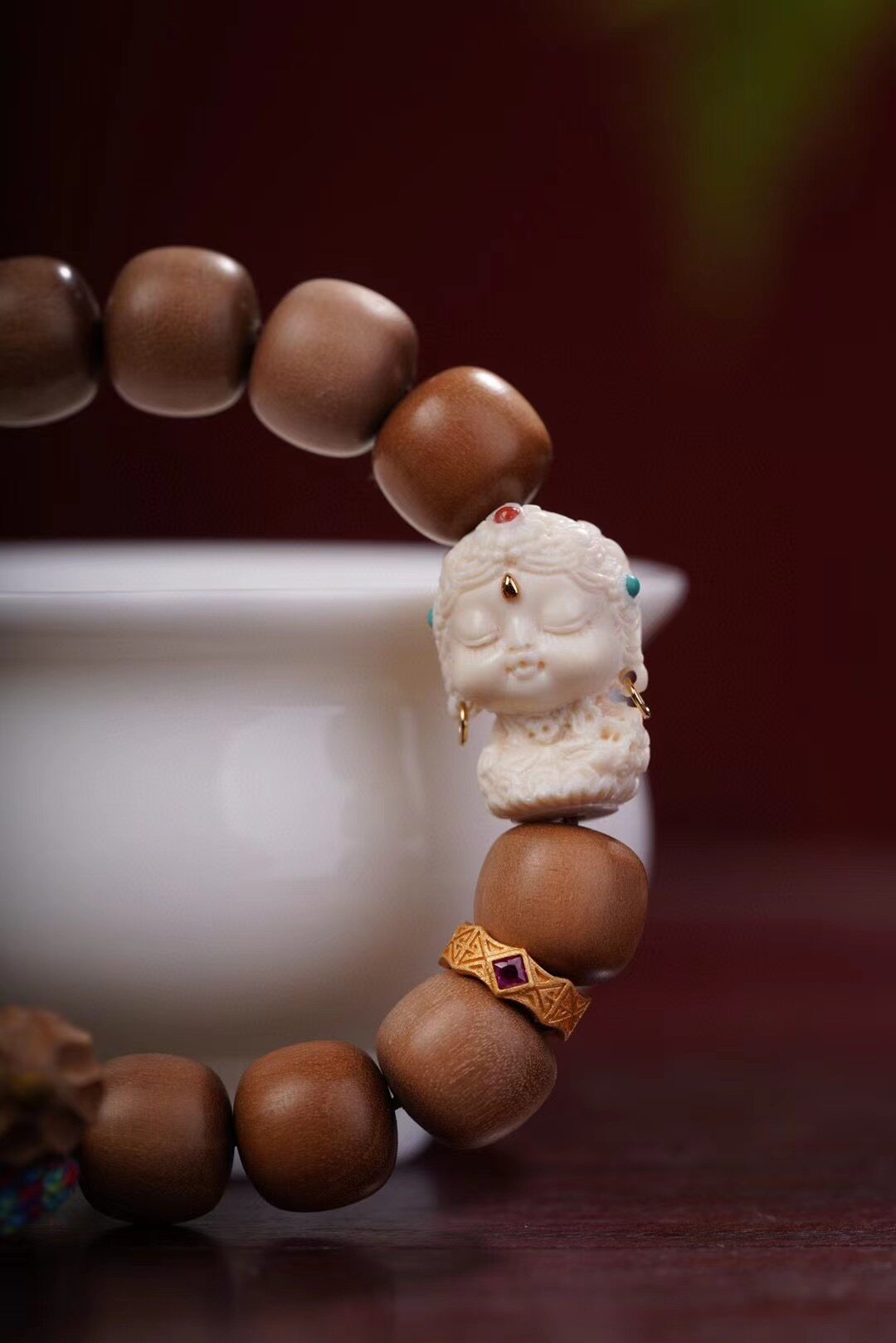 为您提供商品印度老山檀香木10X11老型桶珠搭配猛犸绿度母佛珠手串链饰品送礼的详细介绍,