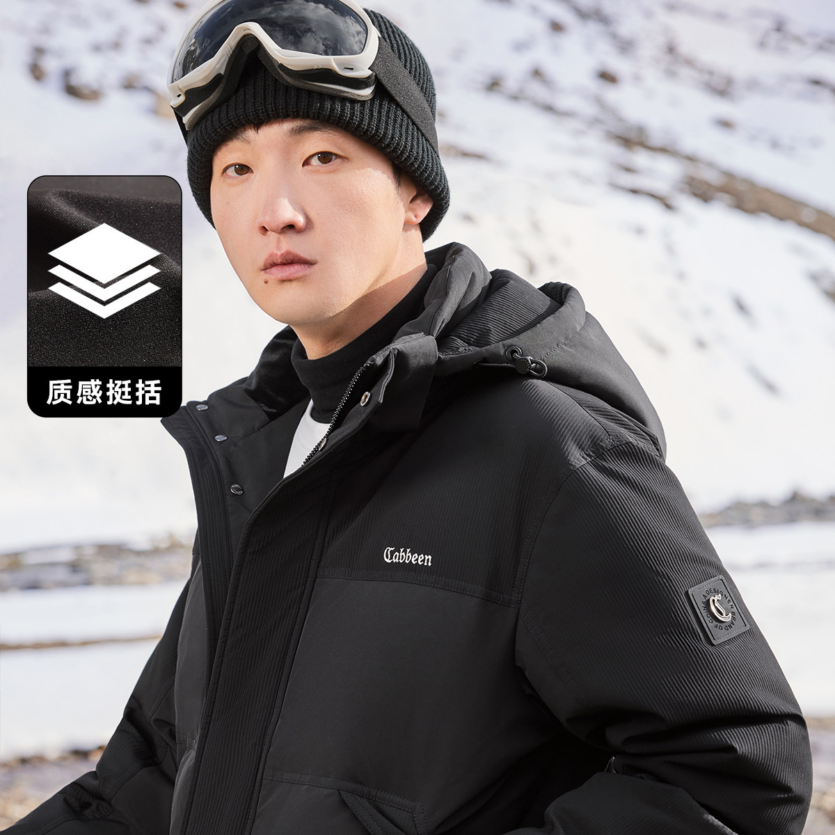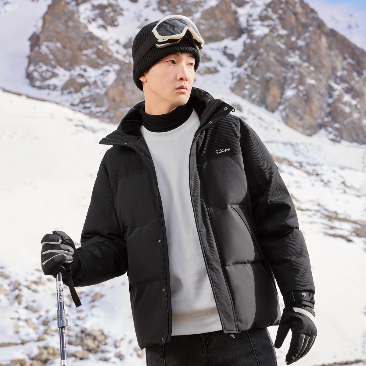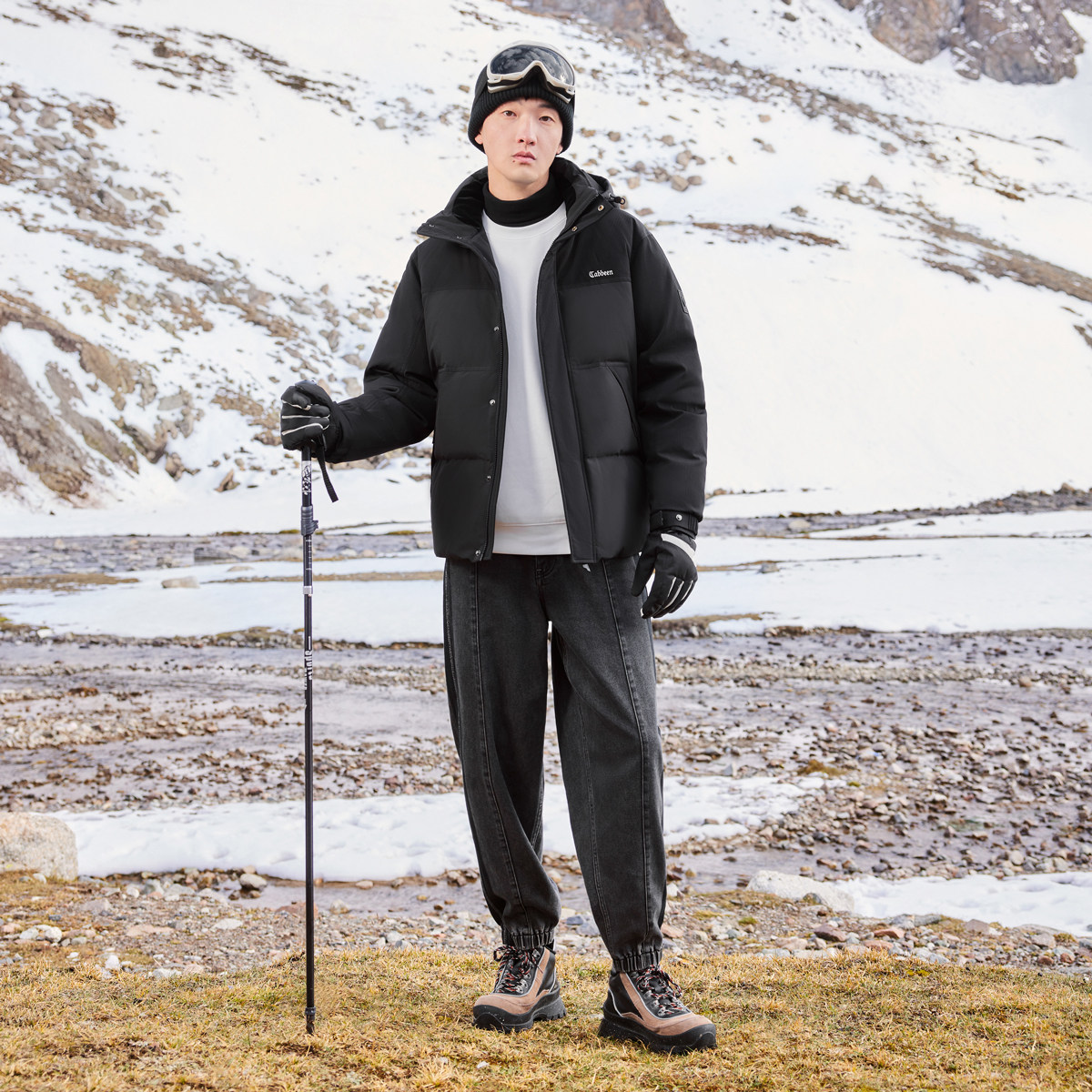 为您提供商品卡宾连帽羽绒服男大衣冬季 新款 宽松黑色保暖厚外套 161G高充绒的详细介绍,