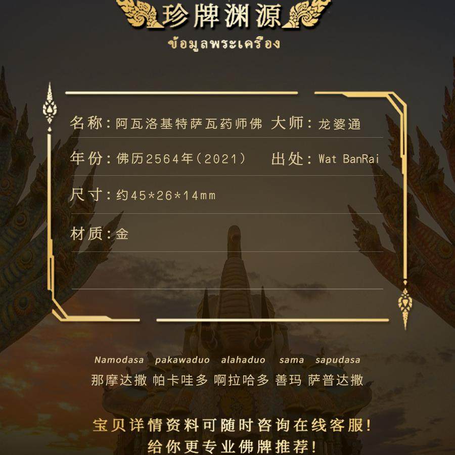 为您提供商品阿瓦洛基特萨瓦药师佛 裸牌30.8g金 龙婆坤龙婆通 泰国佛系牌正品的详细介绍,