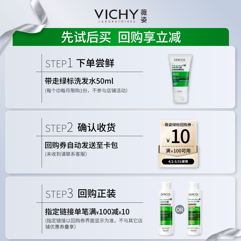 薇姿绿标洗发水小样50ml 二硫化硒去屑清爽体验礼包 天猫U先由