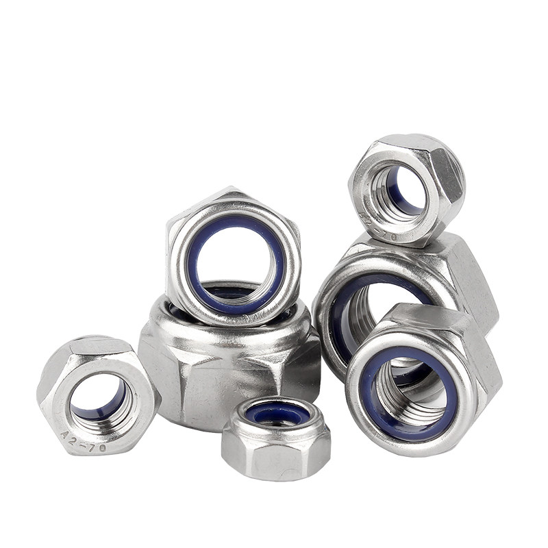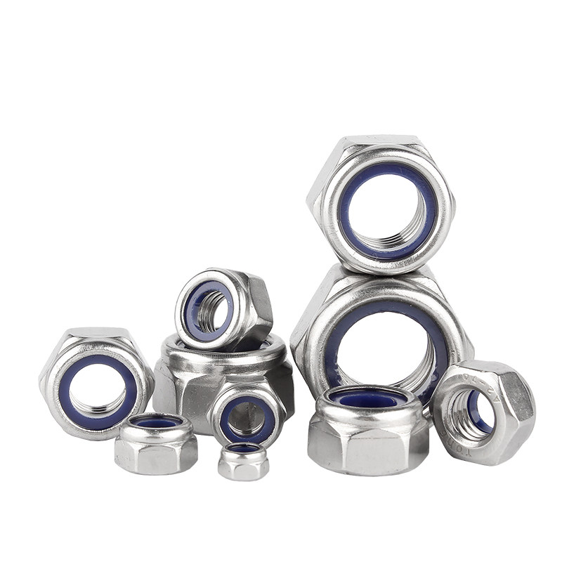 201不锈钢316锁紧螺母防松尼龙六角防滑自锁螺丝帽M3M4M5M6M8 304