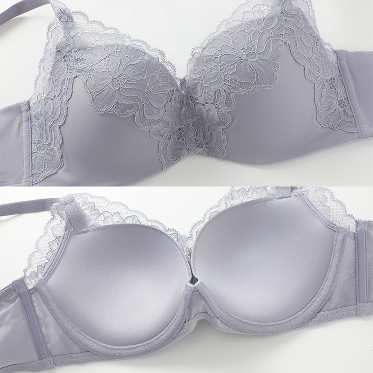 无痕内衣女薄款 新光面上托微聚拢全罩杯大胸显小文胸 小青提 遐
