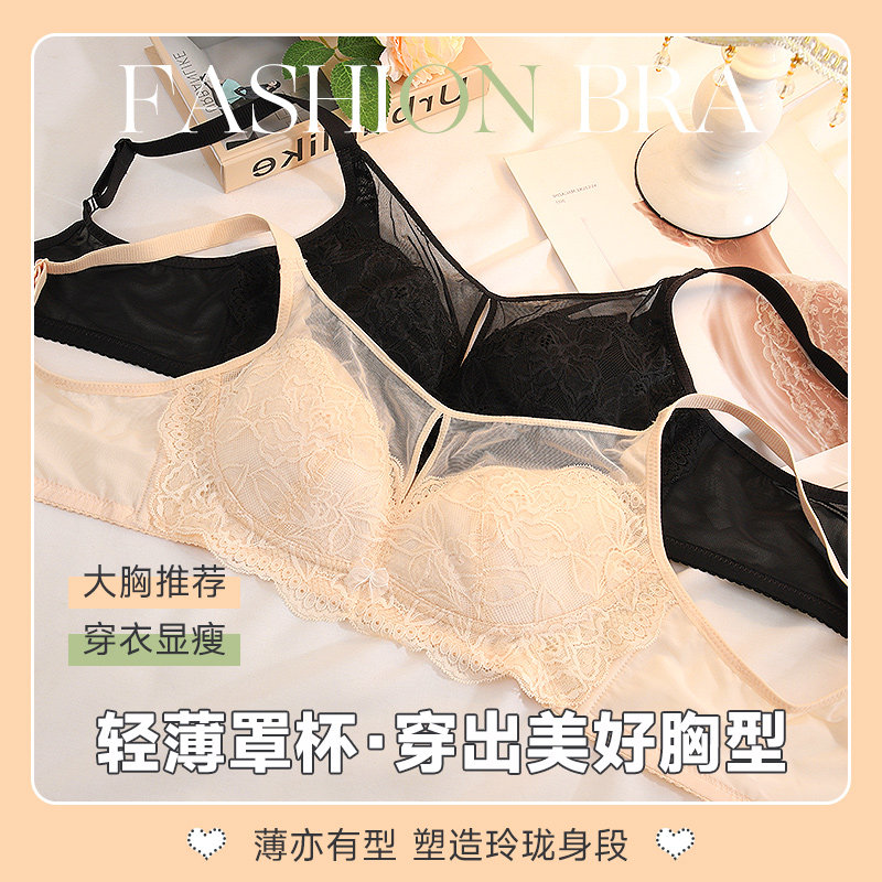 爱黛大胸显小内衣女无钢圈薄棉杯聚拢性感蕾丝文胸罩A6718B2由