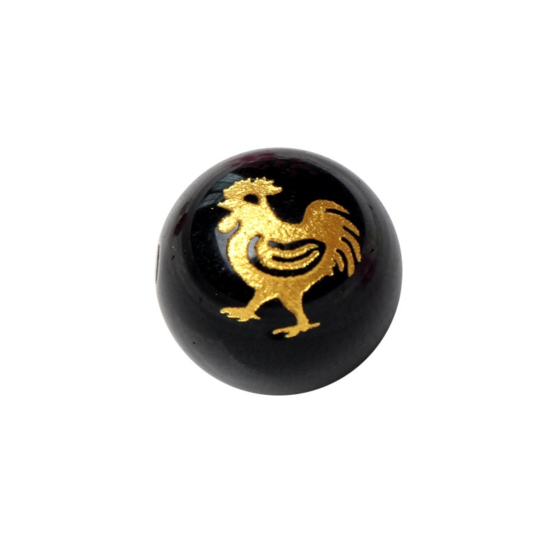 14MM单颗DIY手工串珠编织手链配件 天然黑曜石十二生肖烫金散珠8