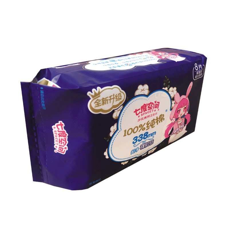 七度空间卫生巾少女系列超薄纯棉夜用加长338mm共5包姨妈巾官网正由