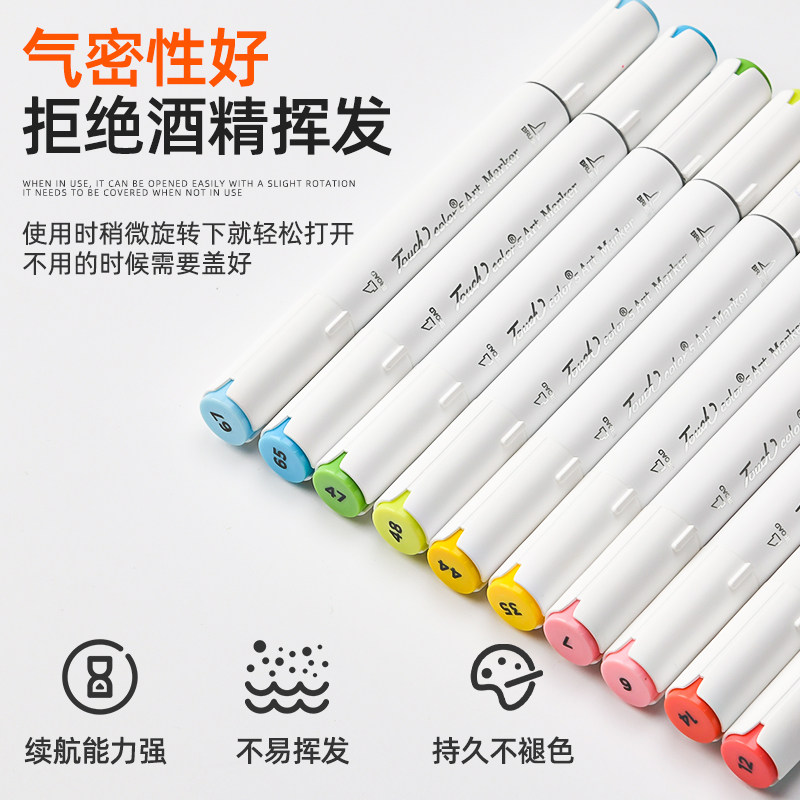 泰驰Touchmark马克笔168色单支自选学生美术专用单只补色单色黑色红色肤色油性双头儿童荧光笔记号笔粗头彩笔