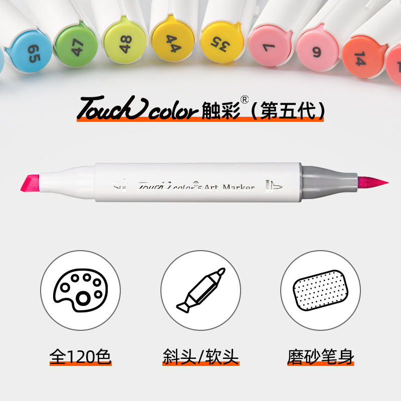 touchcolor 双头油性系列2 5代进口软头马克笔单支自选黑色红色只补色小学生48色动漫漫画美术生专用touch正版