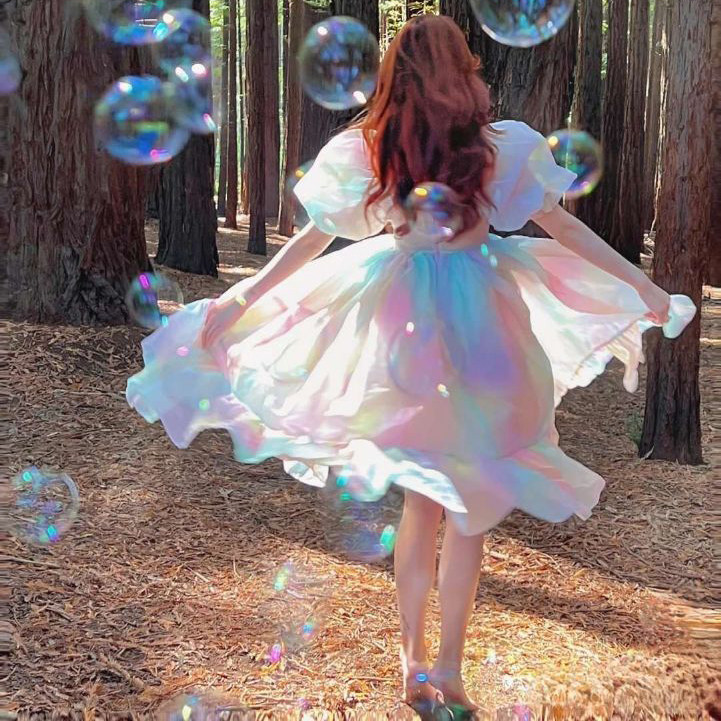 2022年春夏超仙洋气一字领纱裙泡泡袖 连衣裙女 Selkie 五彩斑斓由