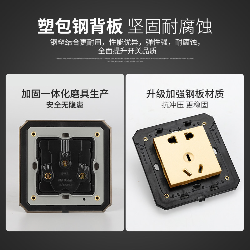 10A电源一开五孔插座USB单控双控 国际电工玫瑰金开关插座面板套装