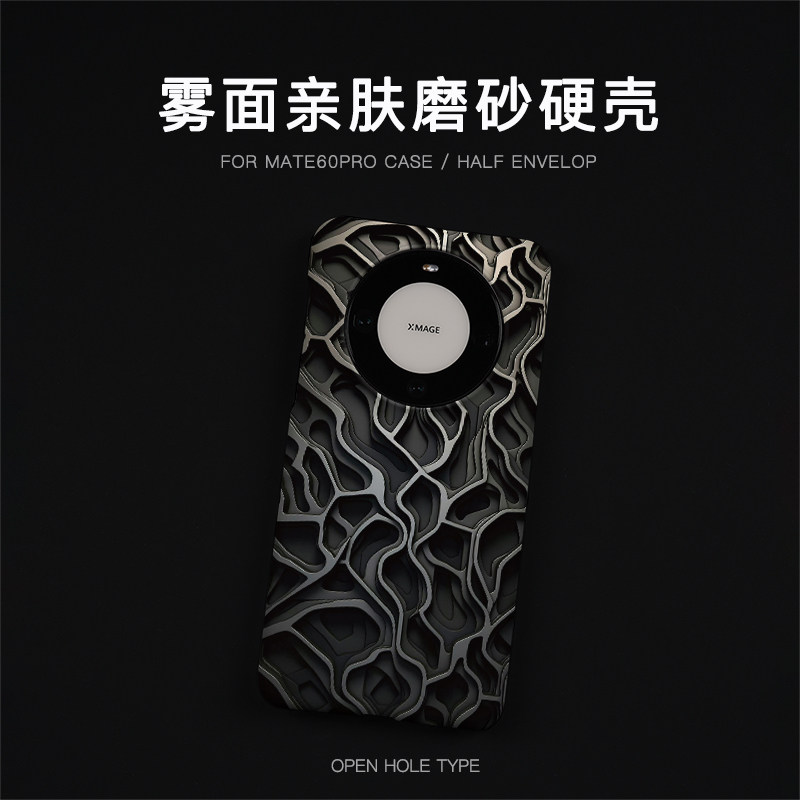 Mate60pro手机壳轻薄新款 潮男女半包磨砂硬壳机械纹 Mate70pro keshami适用华为Mate80pro由