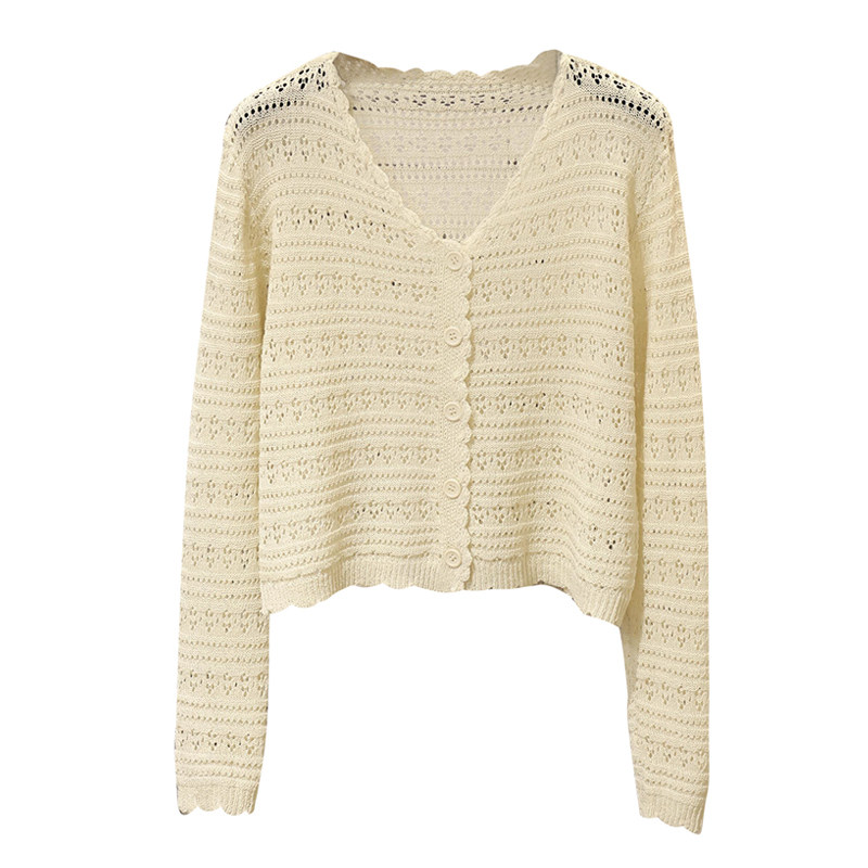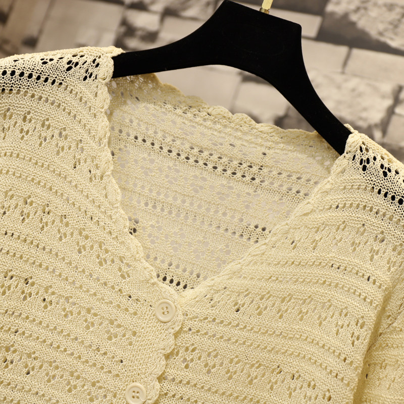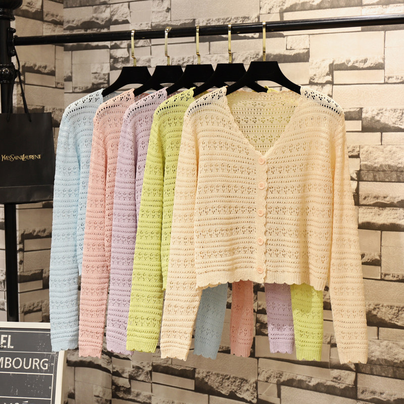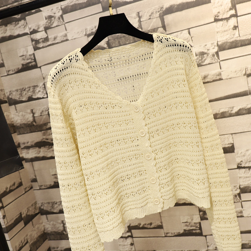 短款 春夏季 钩花镂空宽松冰丝针织开衫 女长袖 上衣 防晒披肩外搭罩衫