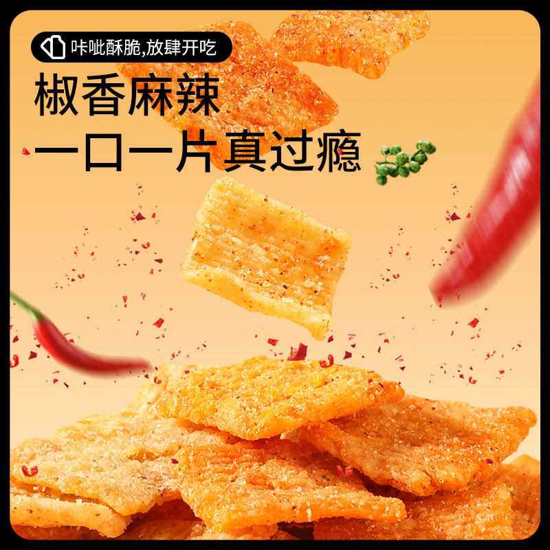 麻辣解馋休闲小零食品超值组合地锅脆片 三只松鼠花椒锅巴108g由