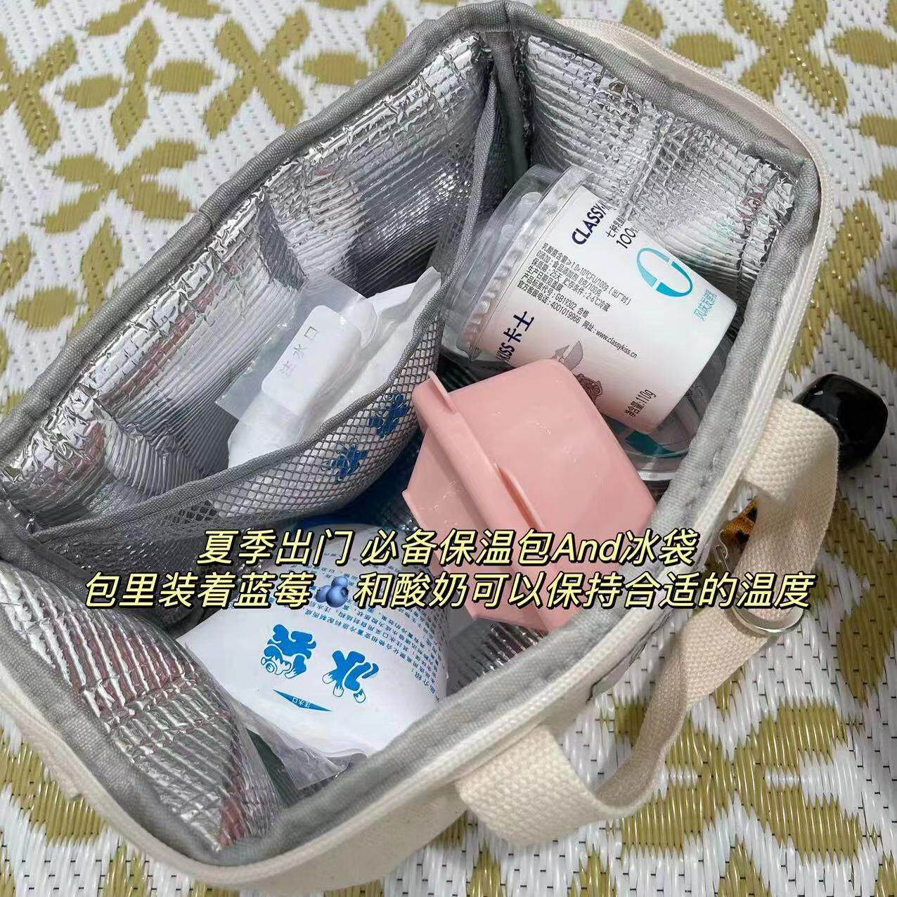 韩国ins露营野餐加厚便携保温包户外手提便当包饭盒袋带饭餐冰包