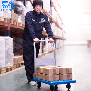 易存平板车小手推车拉货搬运钢板车家用折叠静音便捷快递承载拖车由