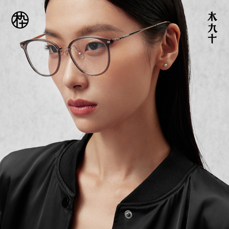 为您提供商品素颜眼镜近视女大框可配度数钛合金眼镜框男MJ101FK075 木九十新款的详细介绍,