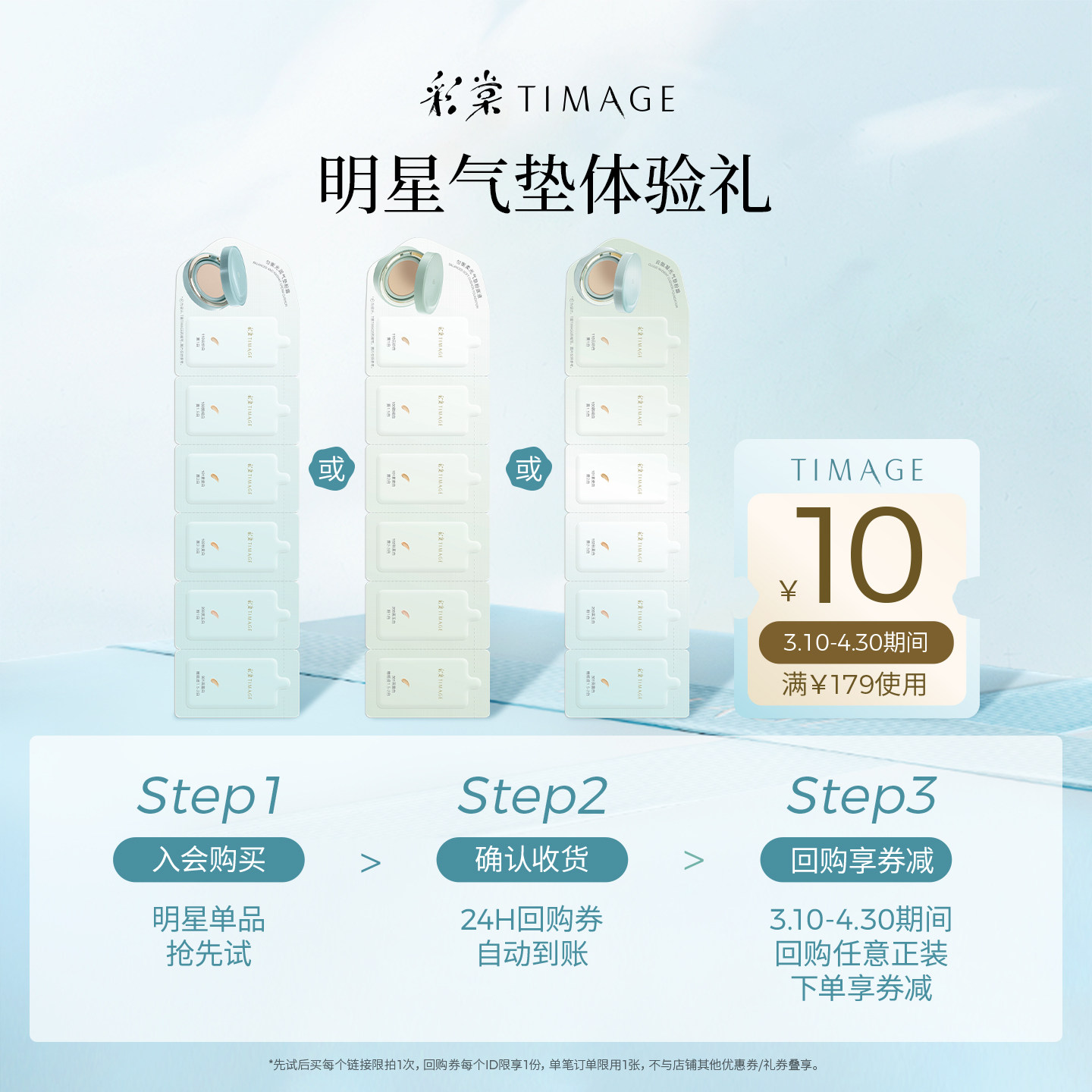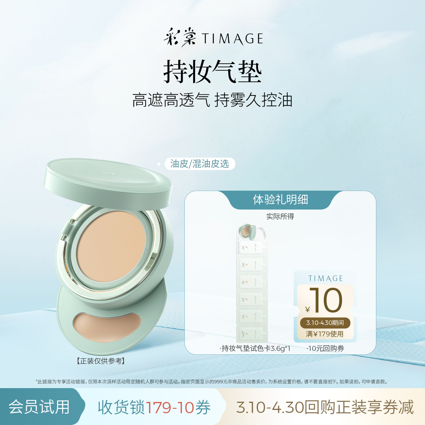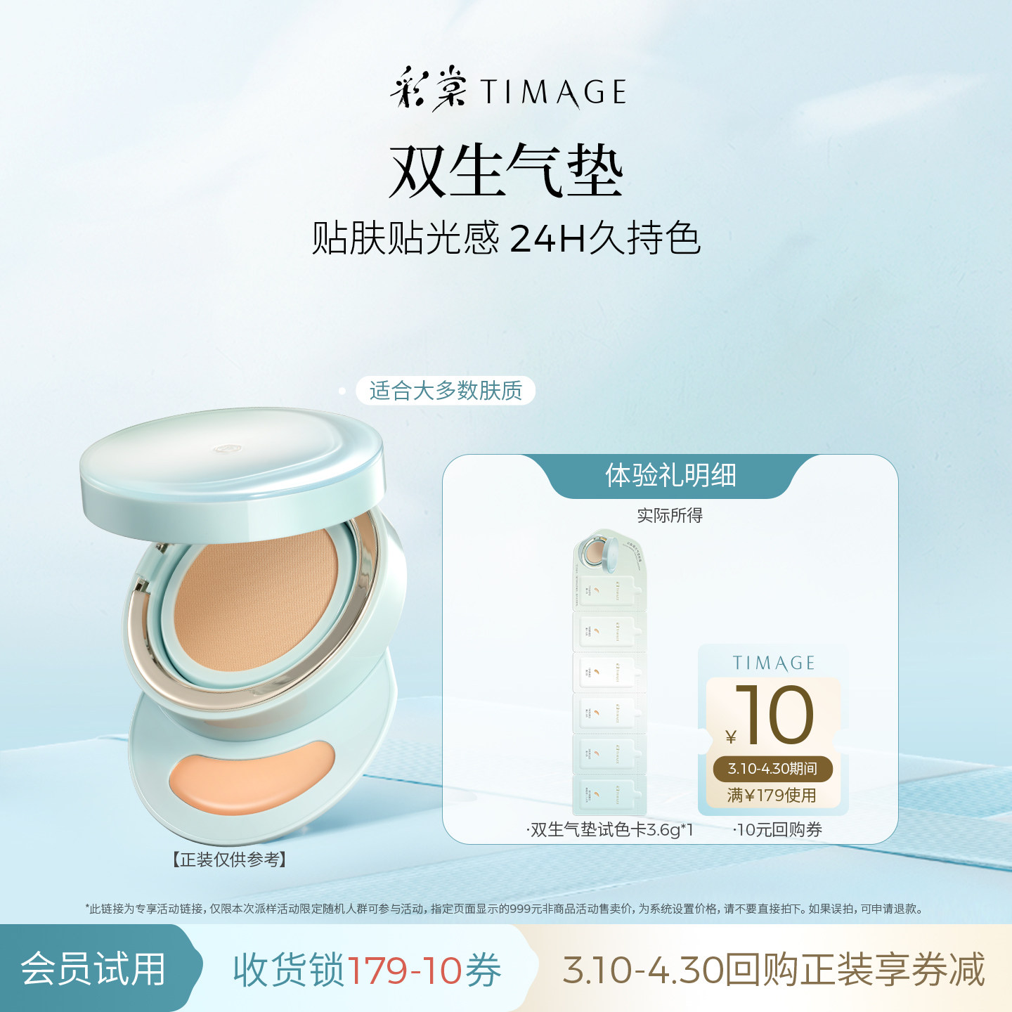 彩棠双生圆管奶皮气垫试色卡3.6g体验装 小样混合肌 天猫U先由