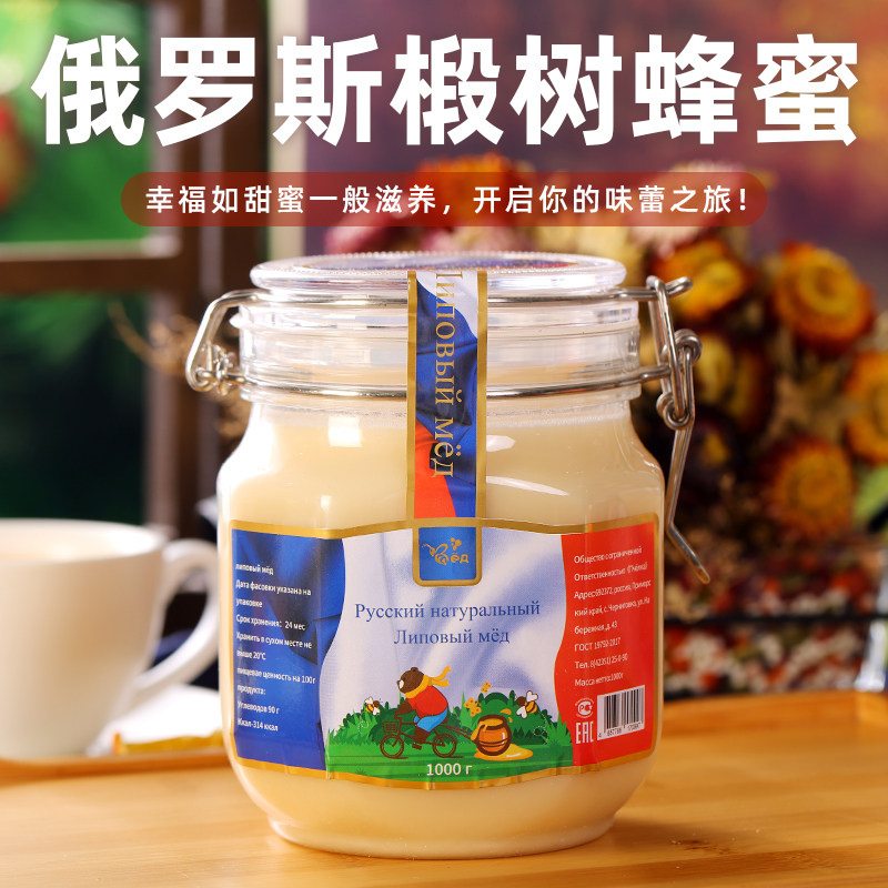 超值 俄罗斯进口蜂蜜野生黑蜂椴树蜂蜜结晶白蜜原蜜雪蜜1250克装