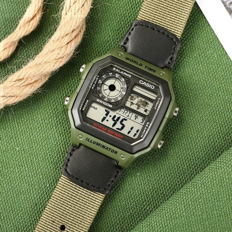 卡西欧学生手表男款 运动女AE 1200WH 复古小方块电子表官方正品由