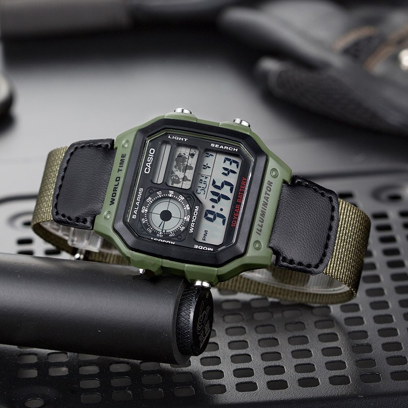 卡西欧学生手表男款 运动女AE 1200WH 复古小方块电子表官方正品