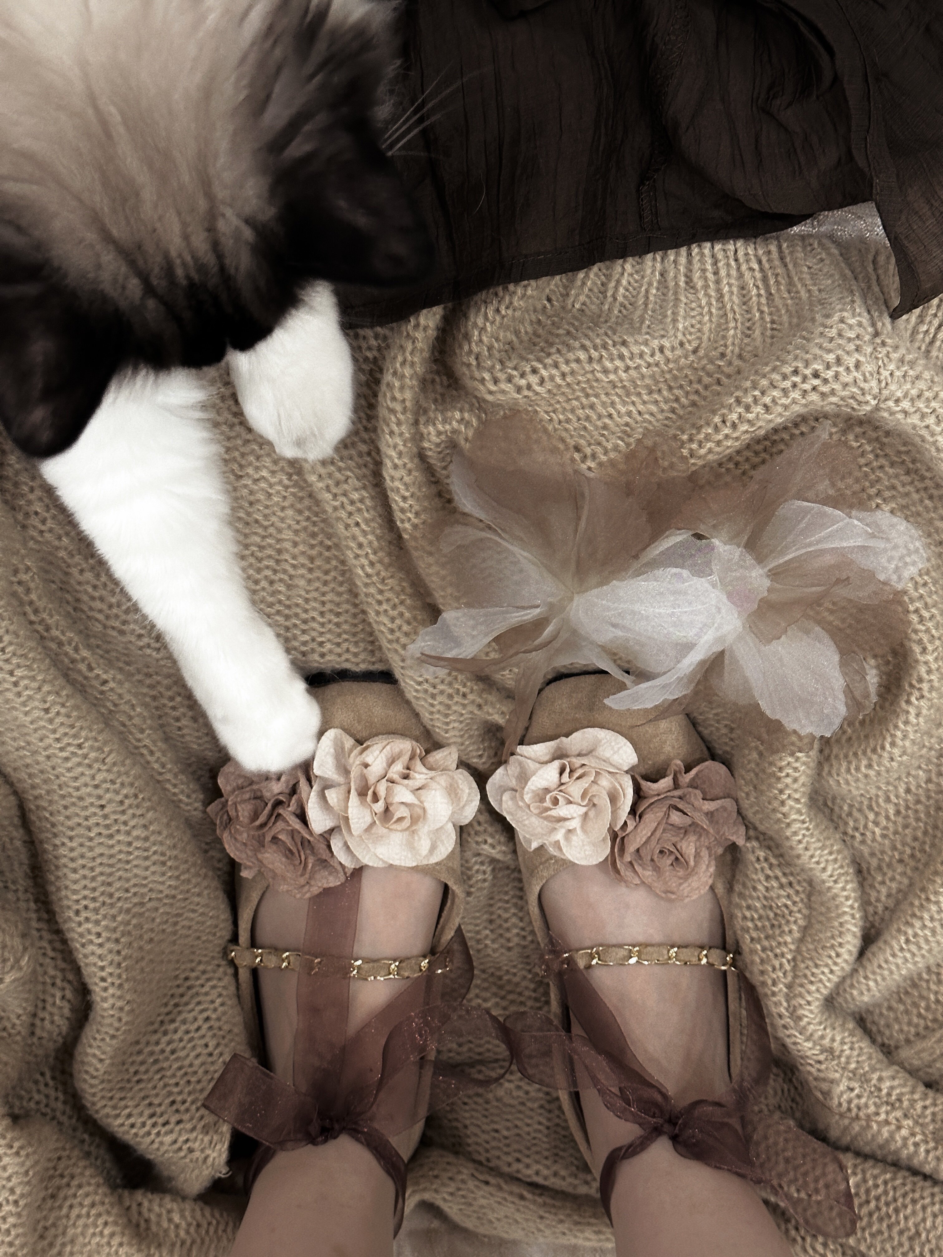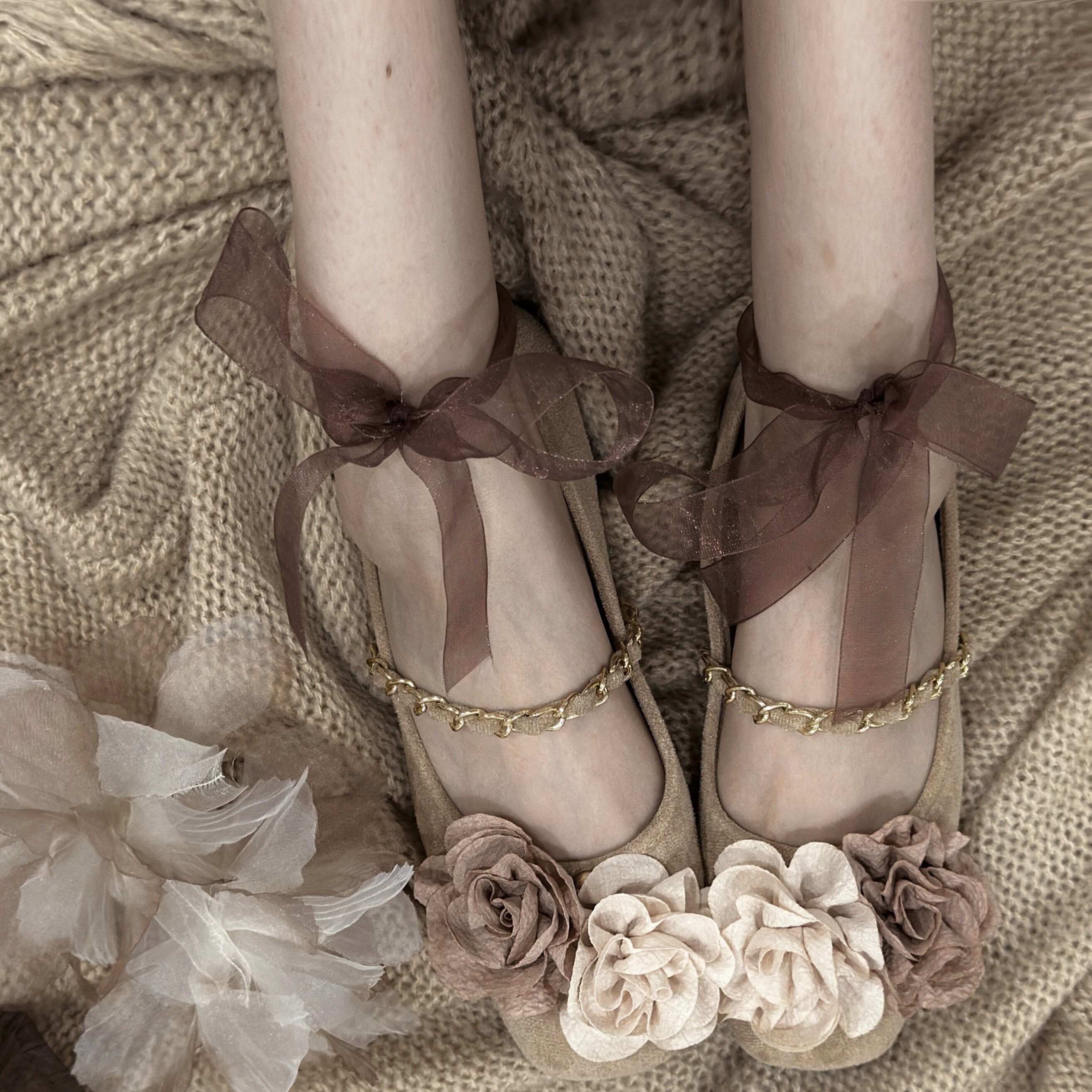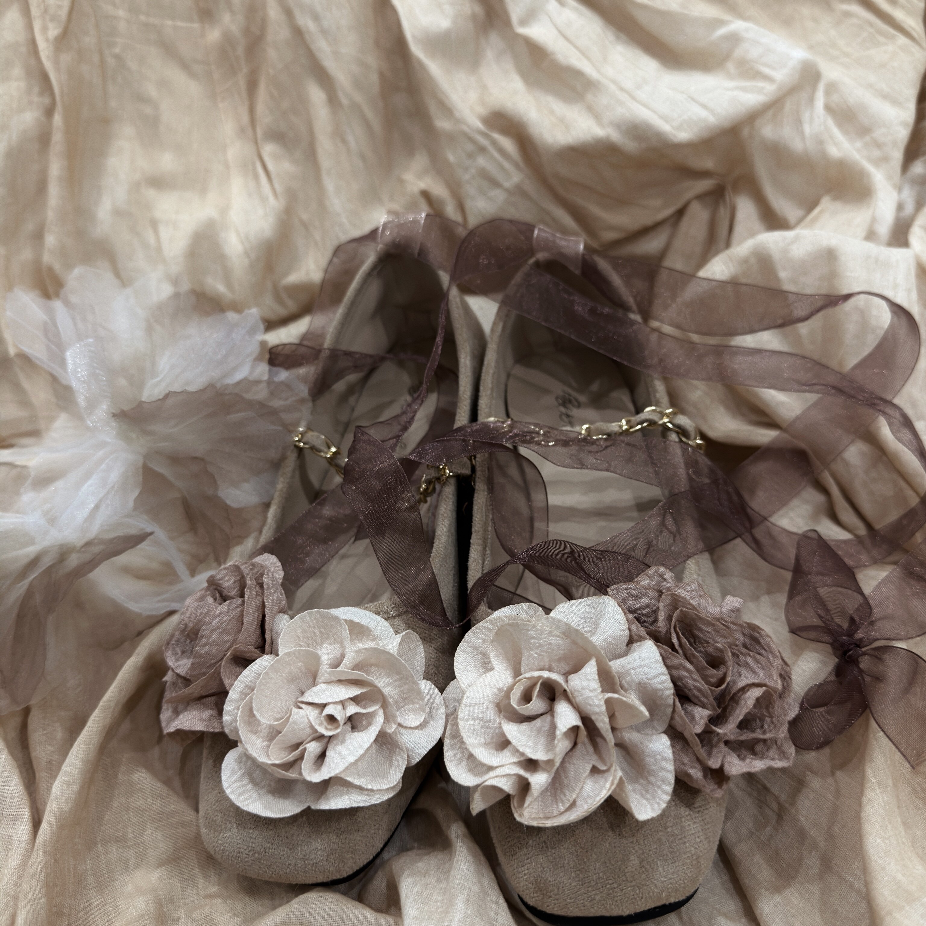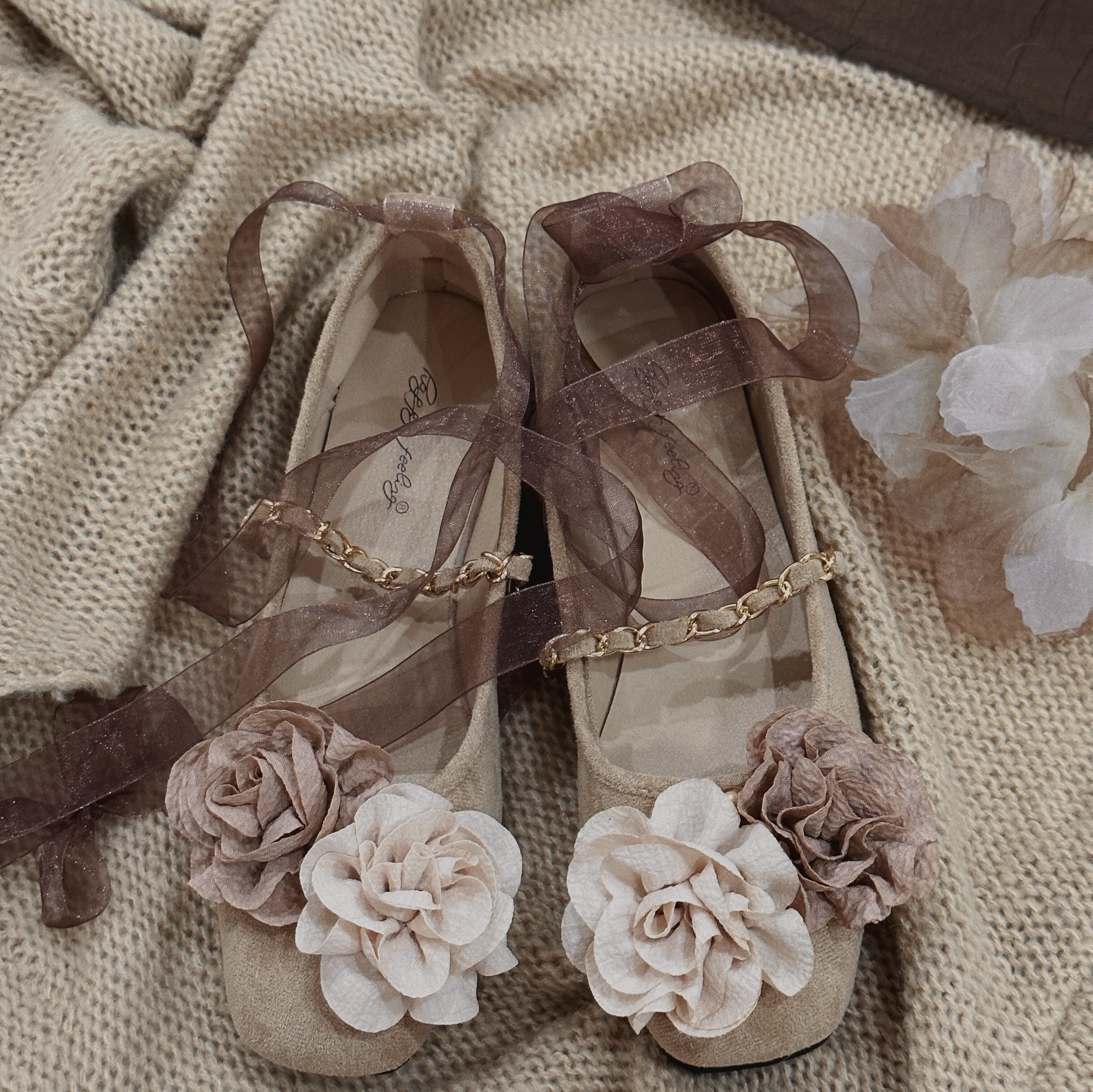 晚风单鞋 枯叶蝶 女绒面软平底一脚蹬法式 禅意侘寂风方头玛丽珍鞋由