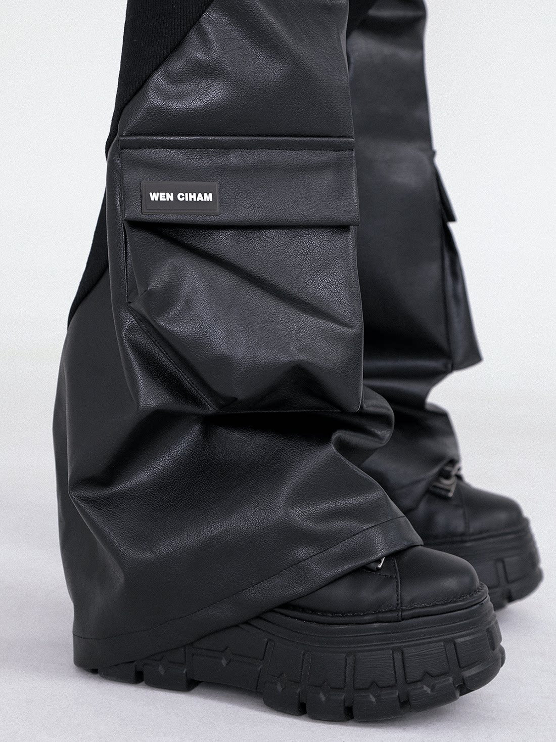 暗黑RO螺纹皮质拼接立体口袋机能风腿套袜套女ins潮 WENCIHAM新款