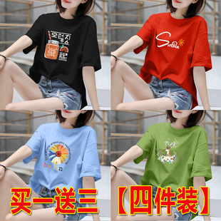 纯棉短袖 宽松韩版 简约圆领上衣印花显瘦大码 ins潮 t恤女夏2023新款
