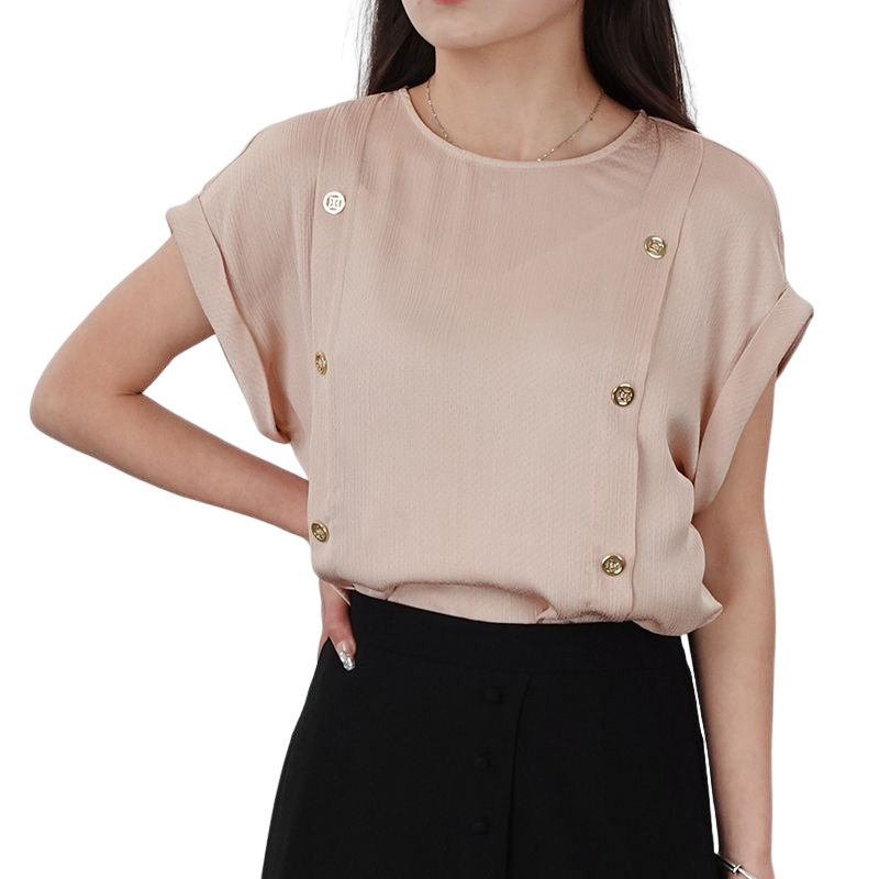 oldcolour21夏季 套头衫 女N23011308 599 洋气宽松显瘦上衣气质短袖