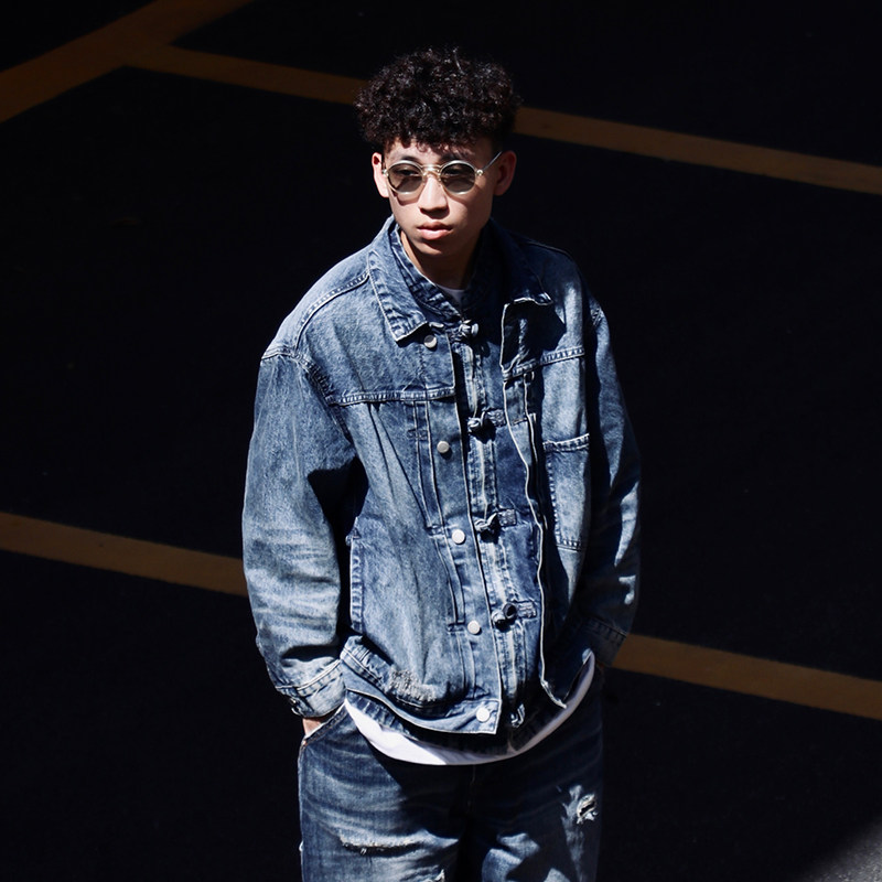 RN77重磅水洗TYPE2唐装 盘扣拼接丹宁猫须复古牛仔夹克 男装 大码由
