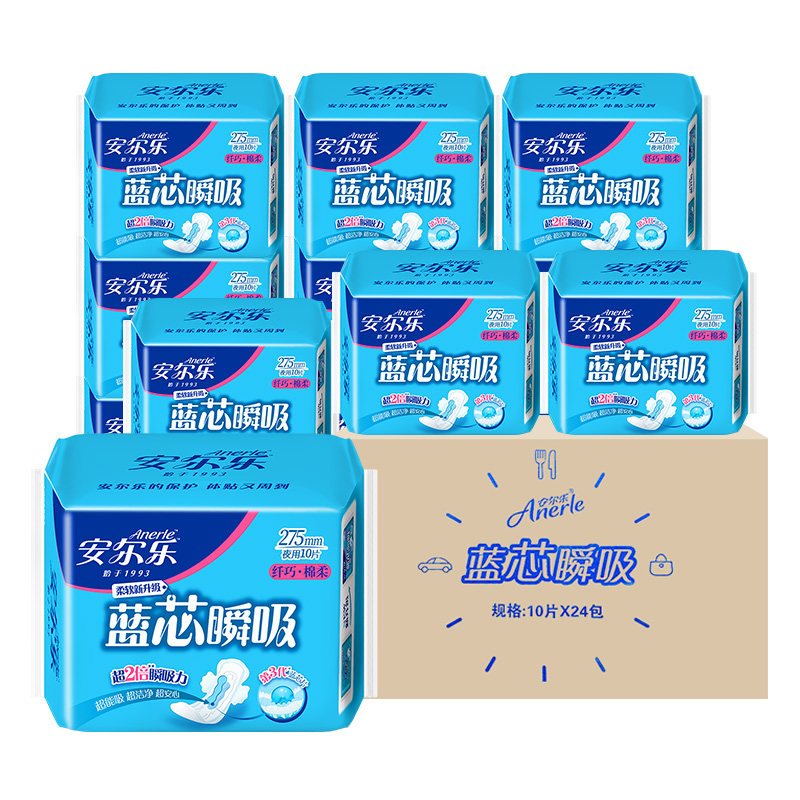 为您提供商品安尔乐蓝芯瞬吸夜用275mm卫生巾绵柔亲肤超薄透气家庭优惠装的详细介绍,