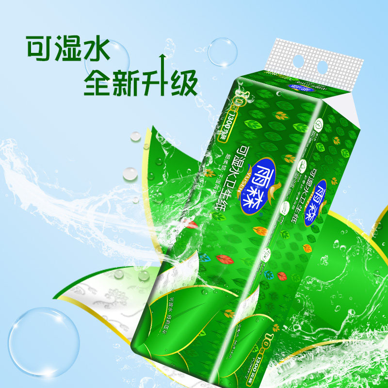 包邮 雨森可湿水卷纸5层10卷1300g卷高128mm家用纸 顺丰由