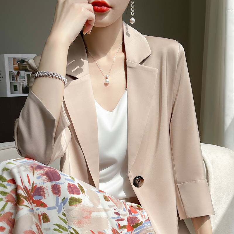 为您提供商品缎面黑色七分袖 醋酸白色西装 外套女高级感休闲薄款 夏季 小西服套装的详细介绍,