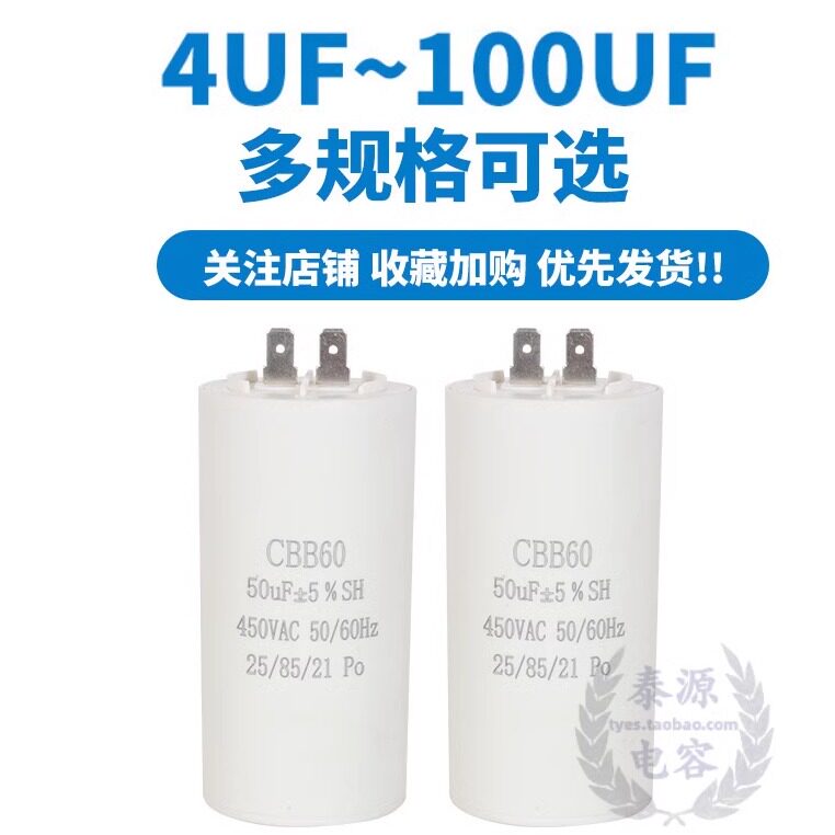 100uf450v启动电容器洗衣机水泵机电容 CBB60单插片电机启动4uf由