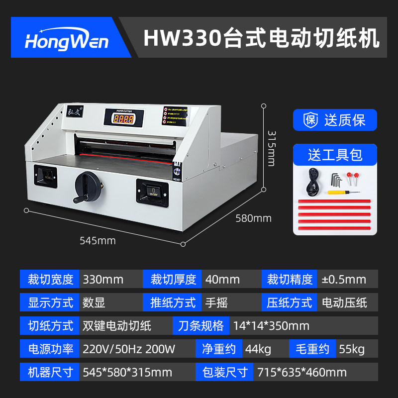 为您提供商品电动裁纸刀重型桌面自动裁切机办公标书切纸器切割机a4书本专业裁纸机裁纸器工业切纸刀HW330 切纸机小型台式的详细介绍,