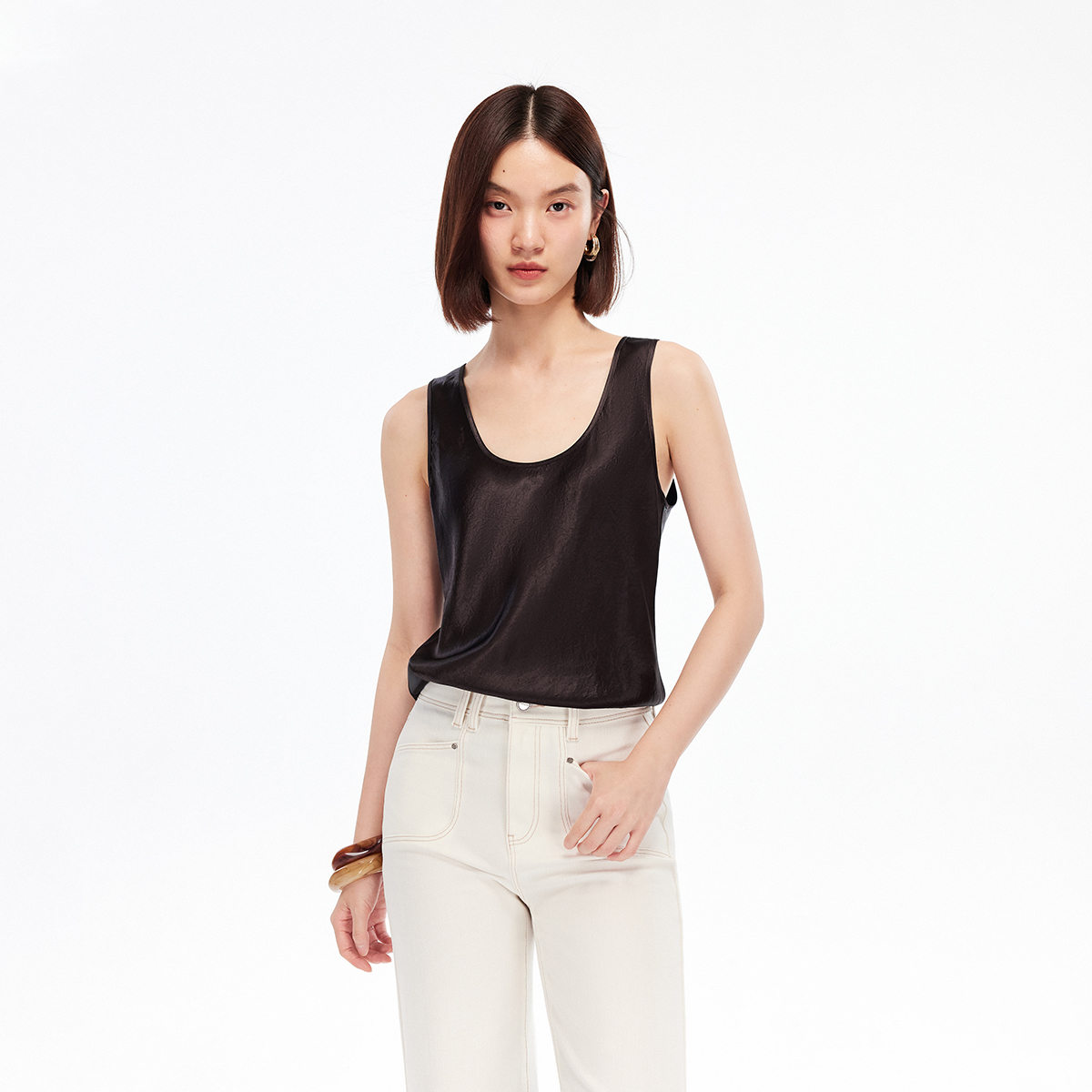 Vero U型领醋纤光泽感上衣女32536Y001 Moda背心2026春夏无袖由