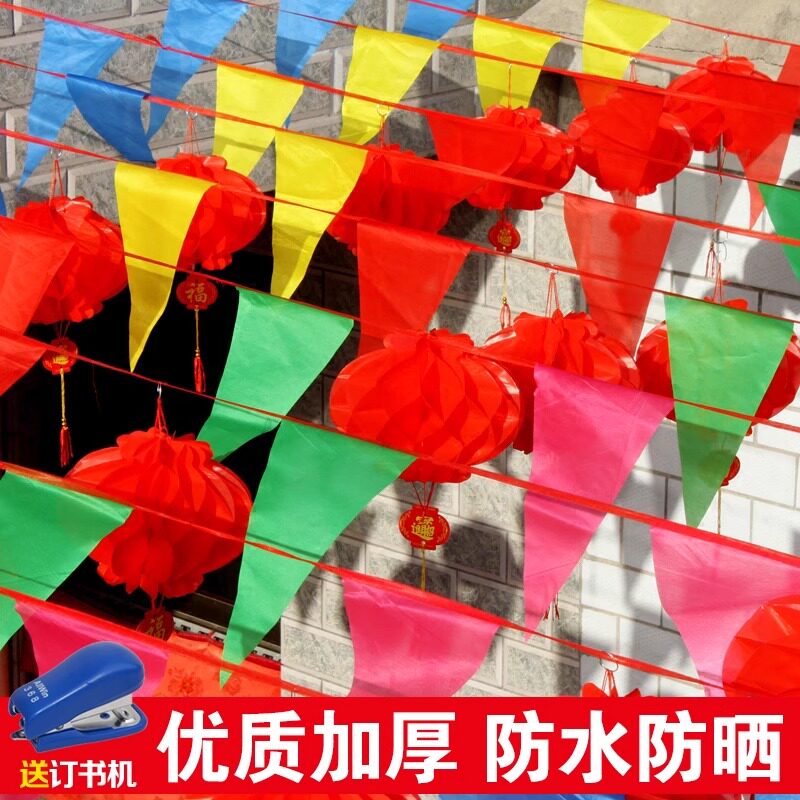 饰彩带拉花彩条三角彩旗小灯笼挂饰户外拉旗串旗 新年氛围布置装由