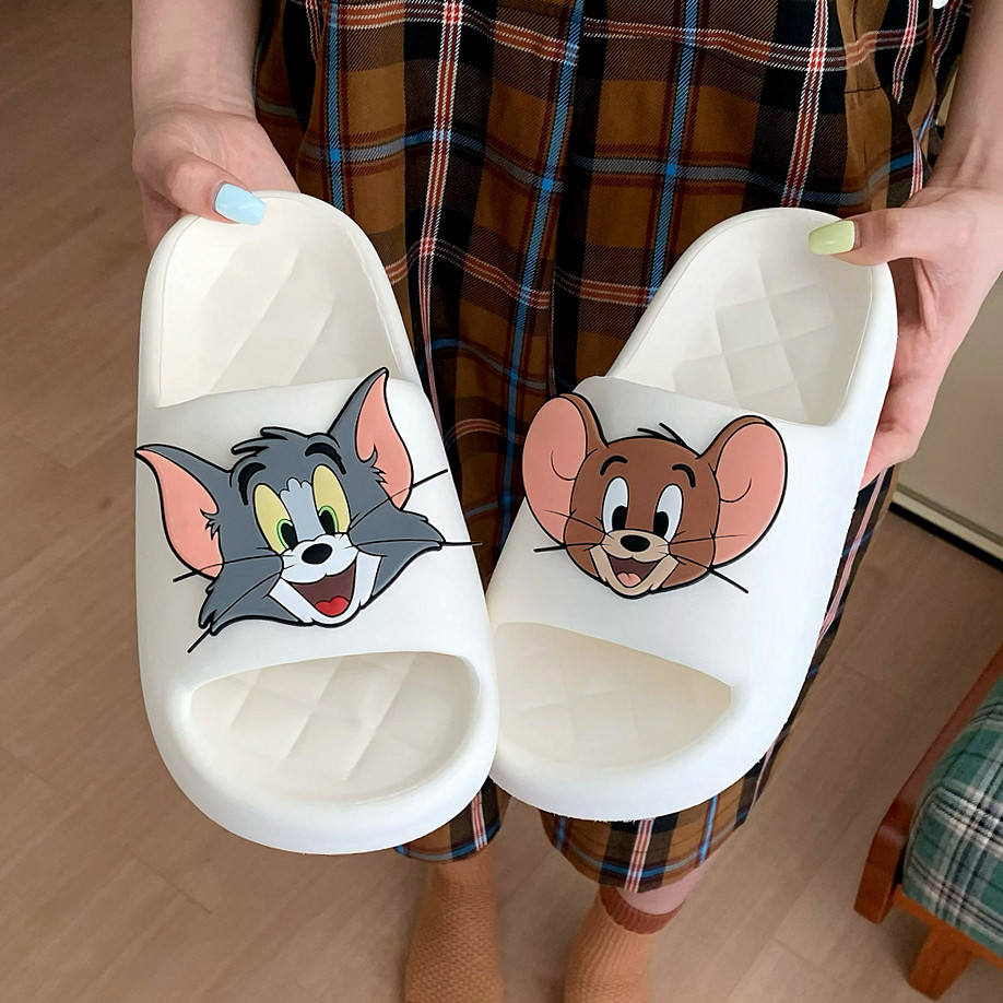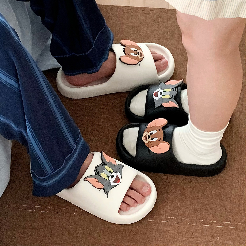 情侣ins正版 夏防滑室内外汤姆猫杰利鼠凉拖男女 猫和老鼠一字拖鞋