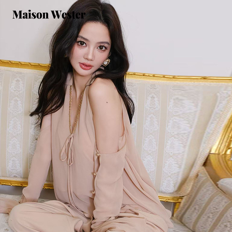 优雅慵懒气质链条饰边设计长袖 Maison Wester2025秋季 新品 雪纺衫由