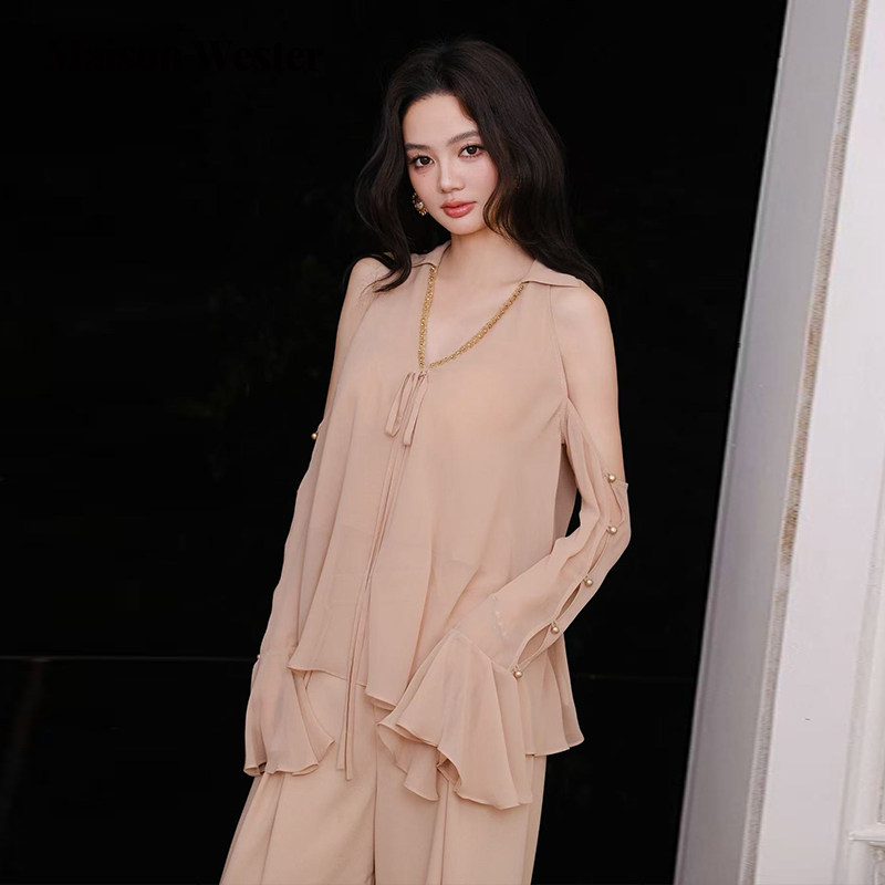 优雅慵懒气质链条饰边设计长袖 Maison Wester2025秋季 新品 雪纺衫