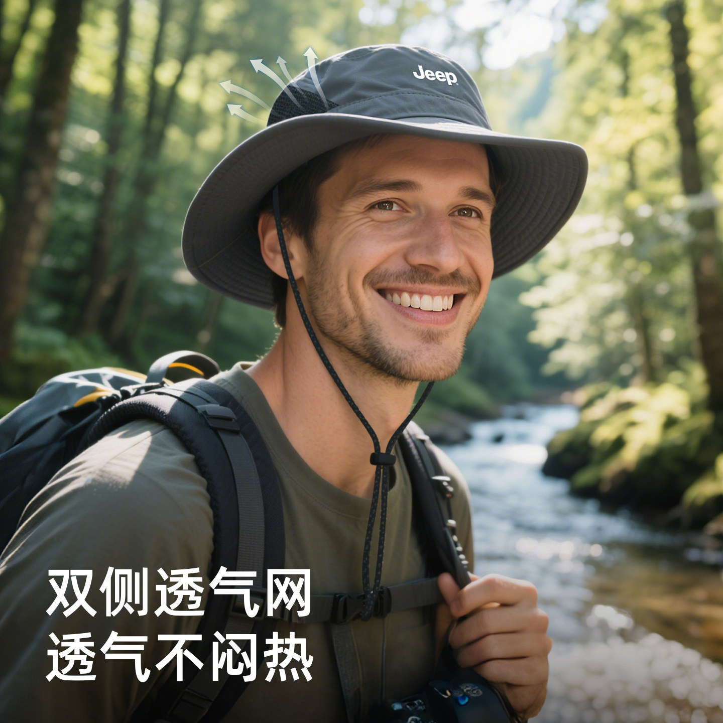 为您提供商品jeep吉普帽子男士 防晒防紫外线遮阳帽户外登山钓鱼太阳渔夫帽 夏季的详细介绍,
